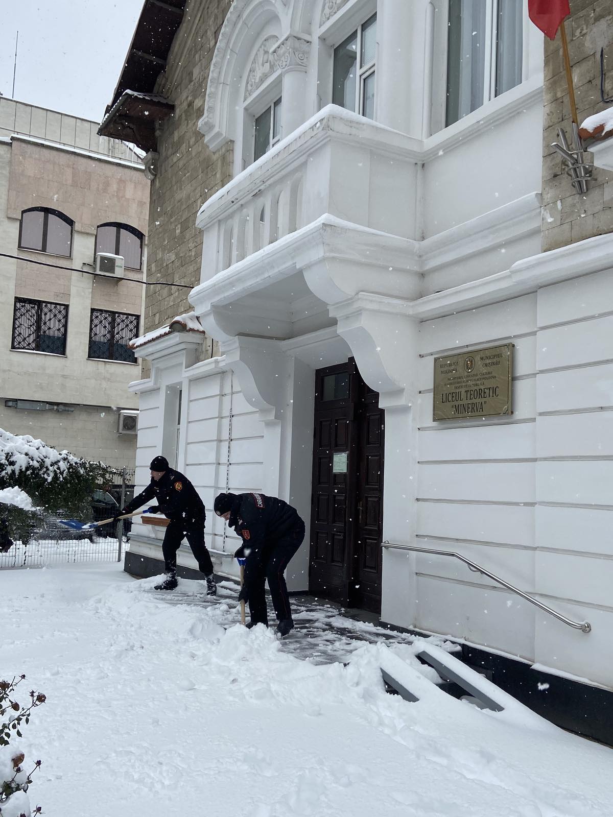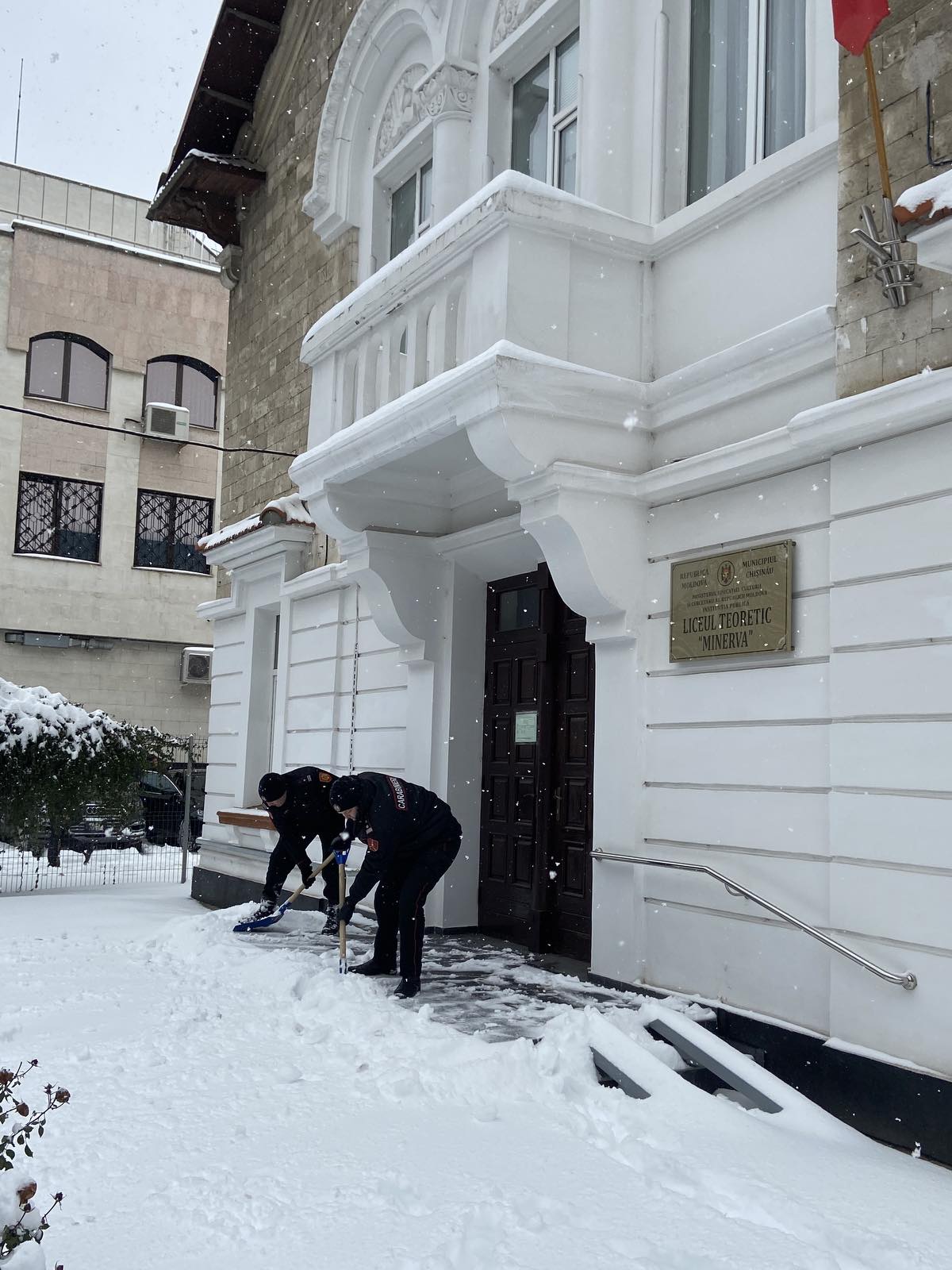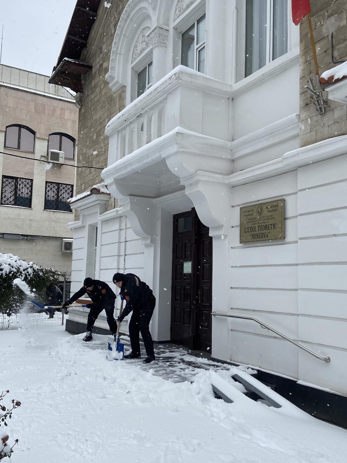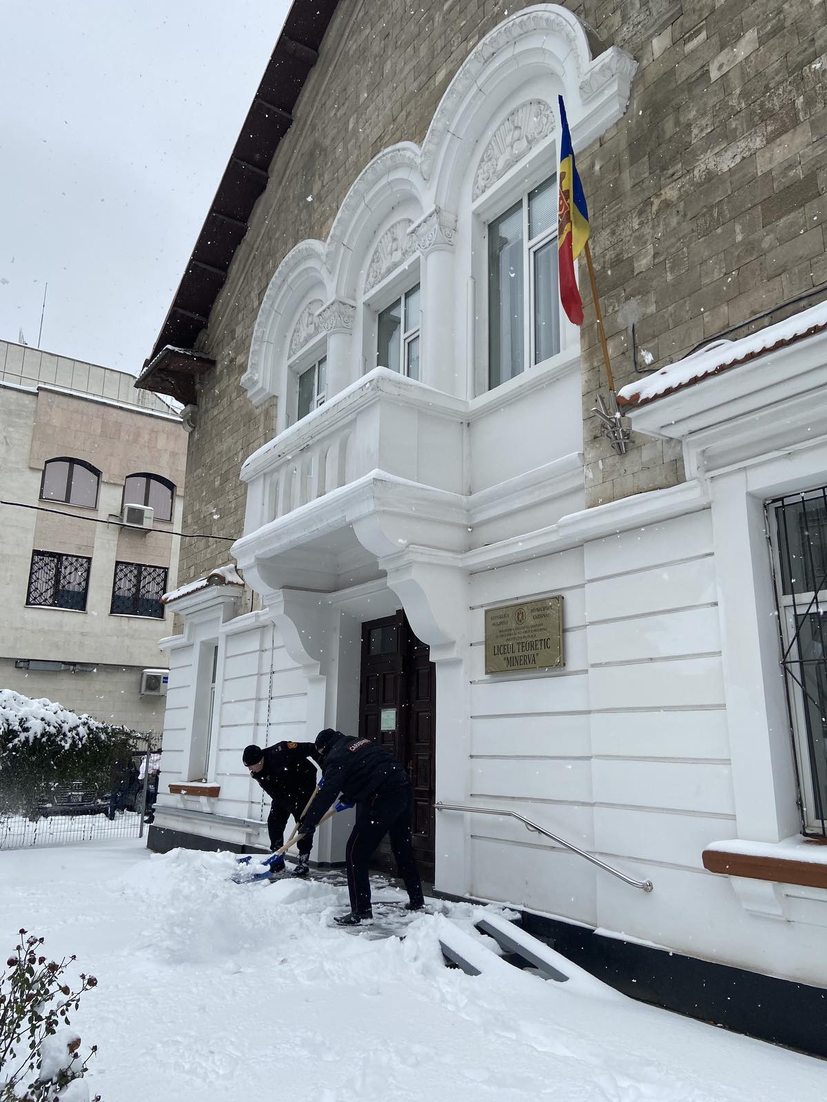 Administraţia Instituţiei Publice Liceul Teoretic „Minerva” aduce sincere mulţumiri conducerii Inspectoratului General de Carabineri şi Unităţii Militare 1002 pentru ajutorul acordat astăzi, 28 decembrie 2021, la dezăpezirea teritoriului instituţiei, cât şi a celui adiacent.
