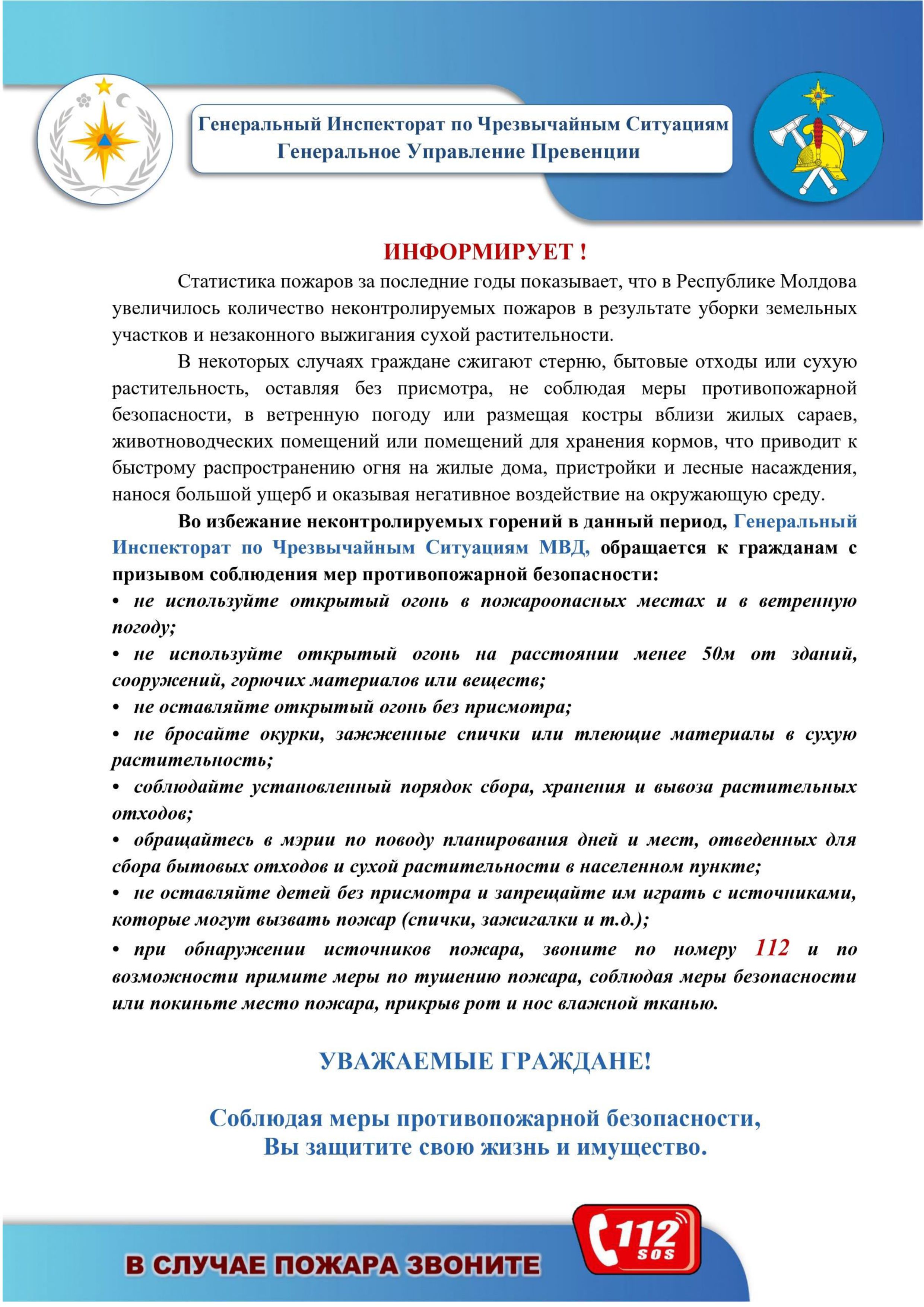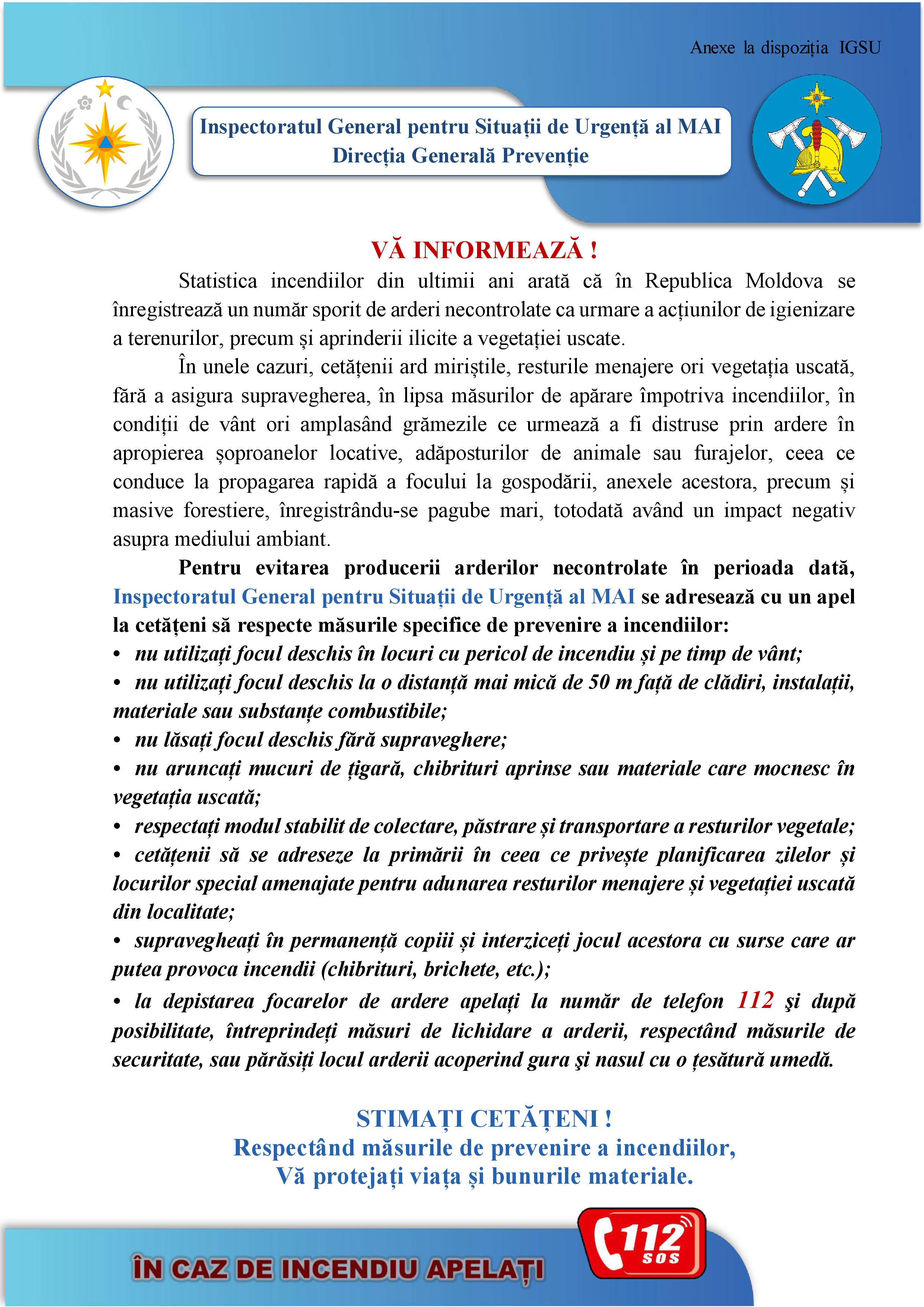 INFORMARE: Măsuri specifice de prevenire a incendiilor