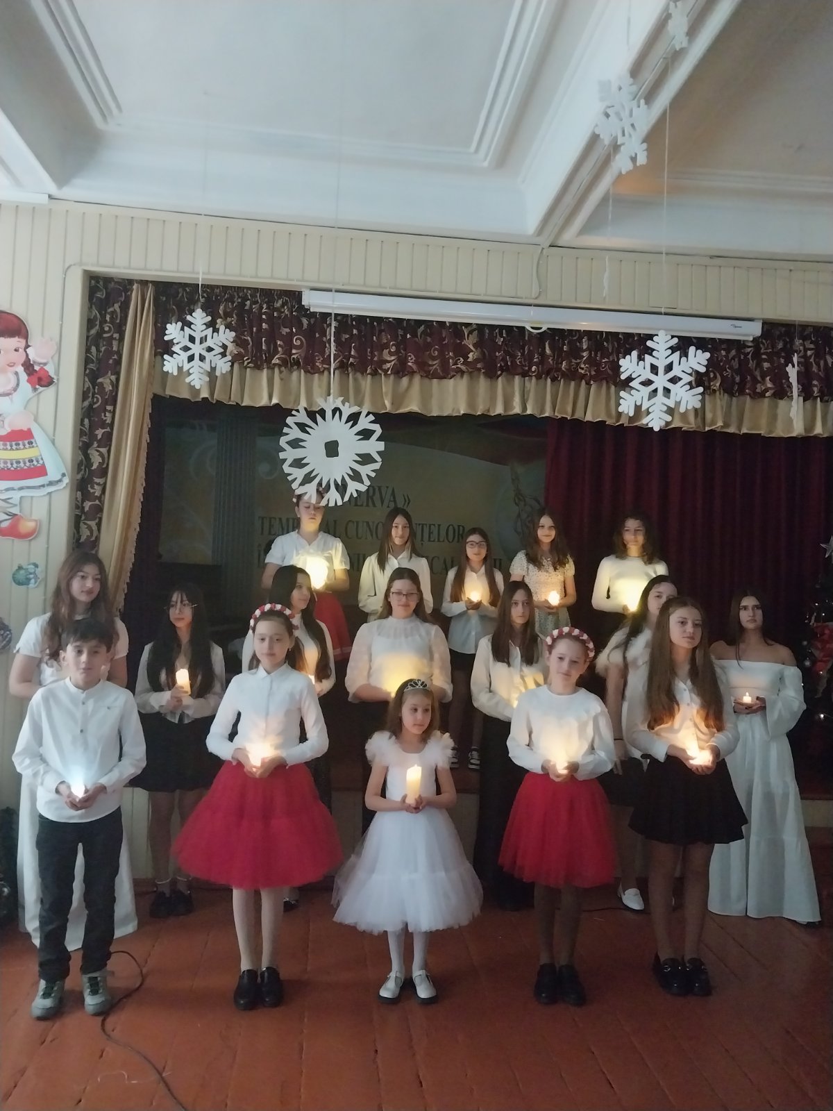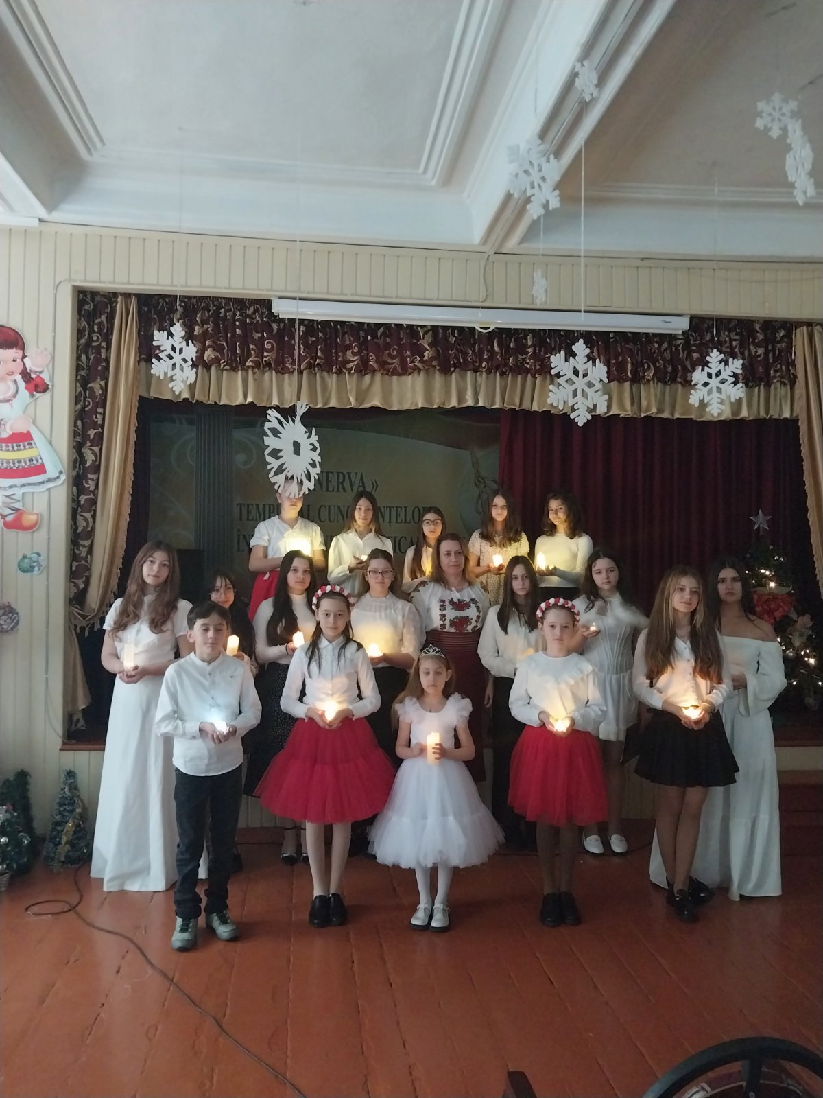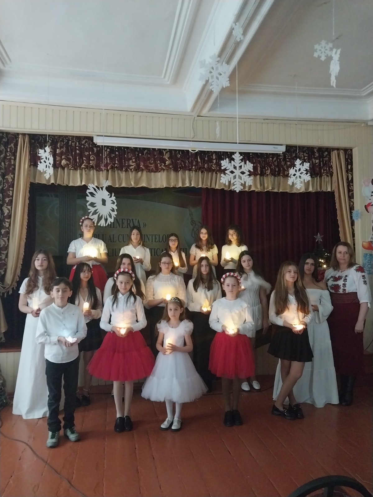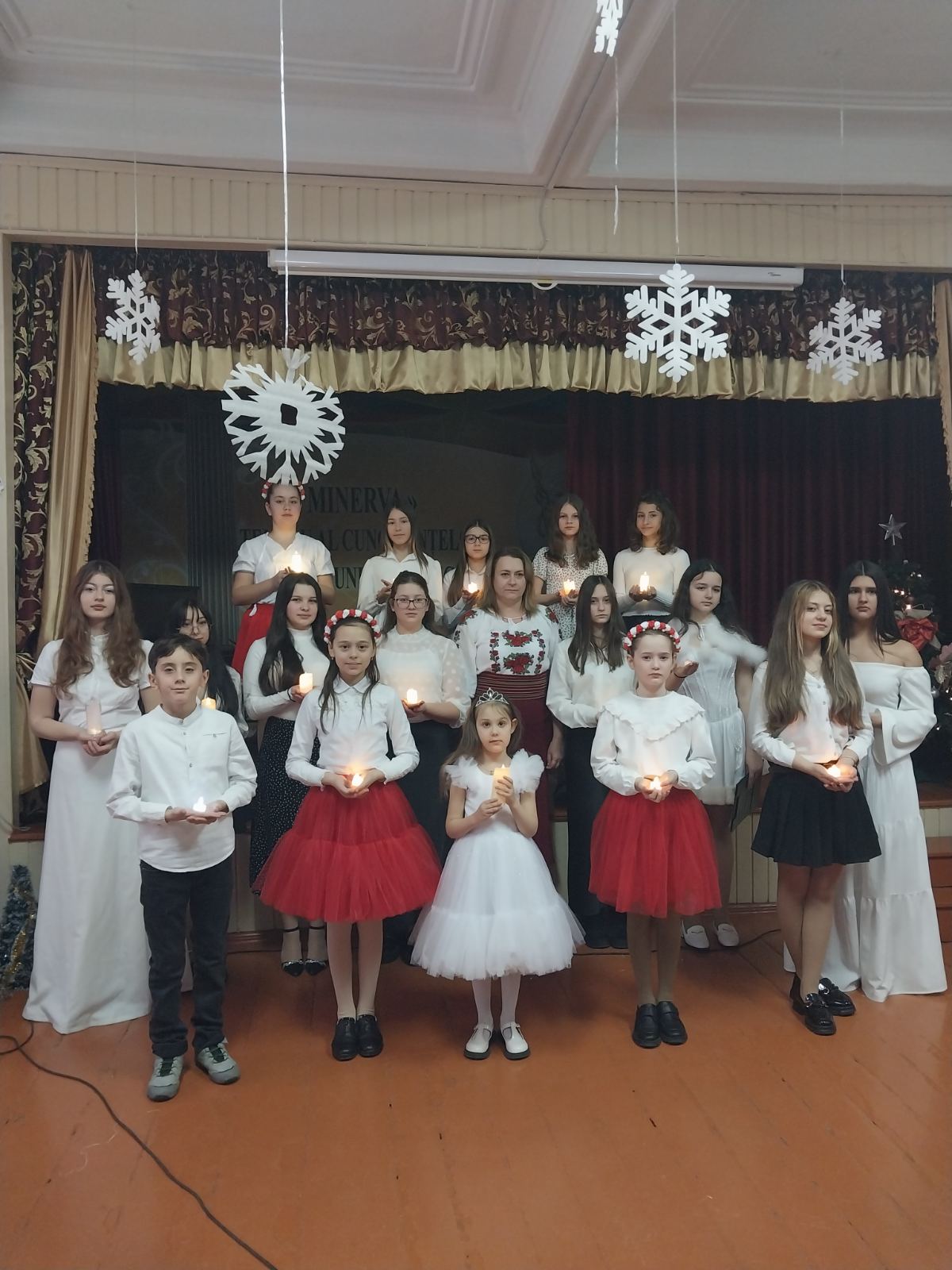 În contextul sărbătorilor de iarnă Ansamblul vocal al liceului, coordonat cu dăruire și profesionalism de doamna Nacu Natalia au prezentat un program artistic elevilor din clasele a V-a-VII-a.